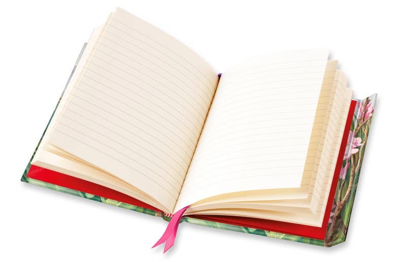 Beautiful and luxurious the journals combine high-quality production with magnificent art. The highly crafted covers are printed on foil paper, embossed then foil stamped, complemented by the luxury binding and rose red end-papers. Flame Tree Notebooks come with practical features too: a pocket at the back for scraps and receipts; two ribbon markers to help keep track of more than just a to-do list; robust ivory text paper, printed with lines; and when you need to collect other notes or scraps of paper the magnetic side flap keeps everything neat and tidy.