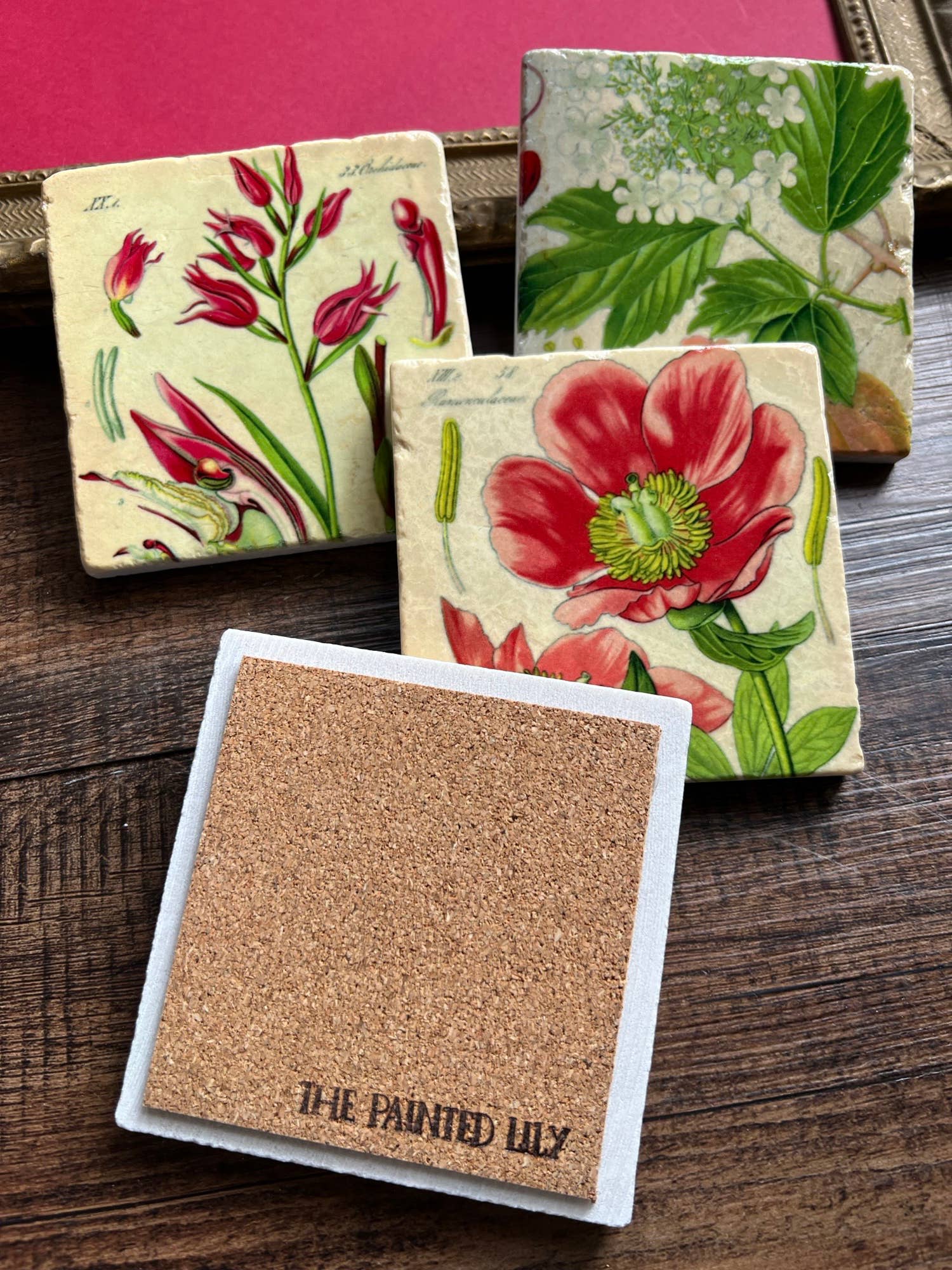 The Painted Lily - Pretty Pink Botanicals stone coasters - case of 4