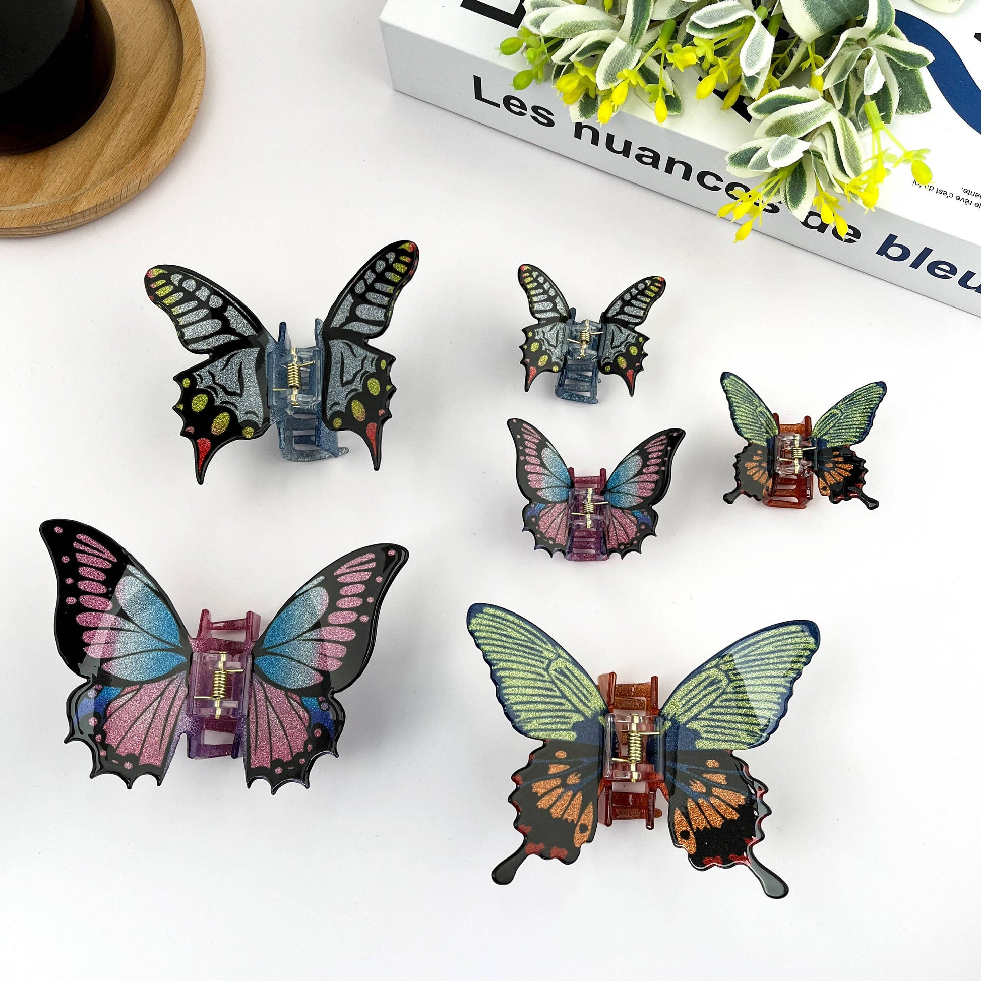 TheDivaSoap - Glitter Butterfly Hair Clip, Animal Hair Claw Set: Green / Large