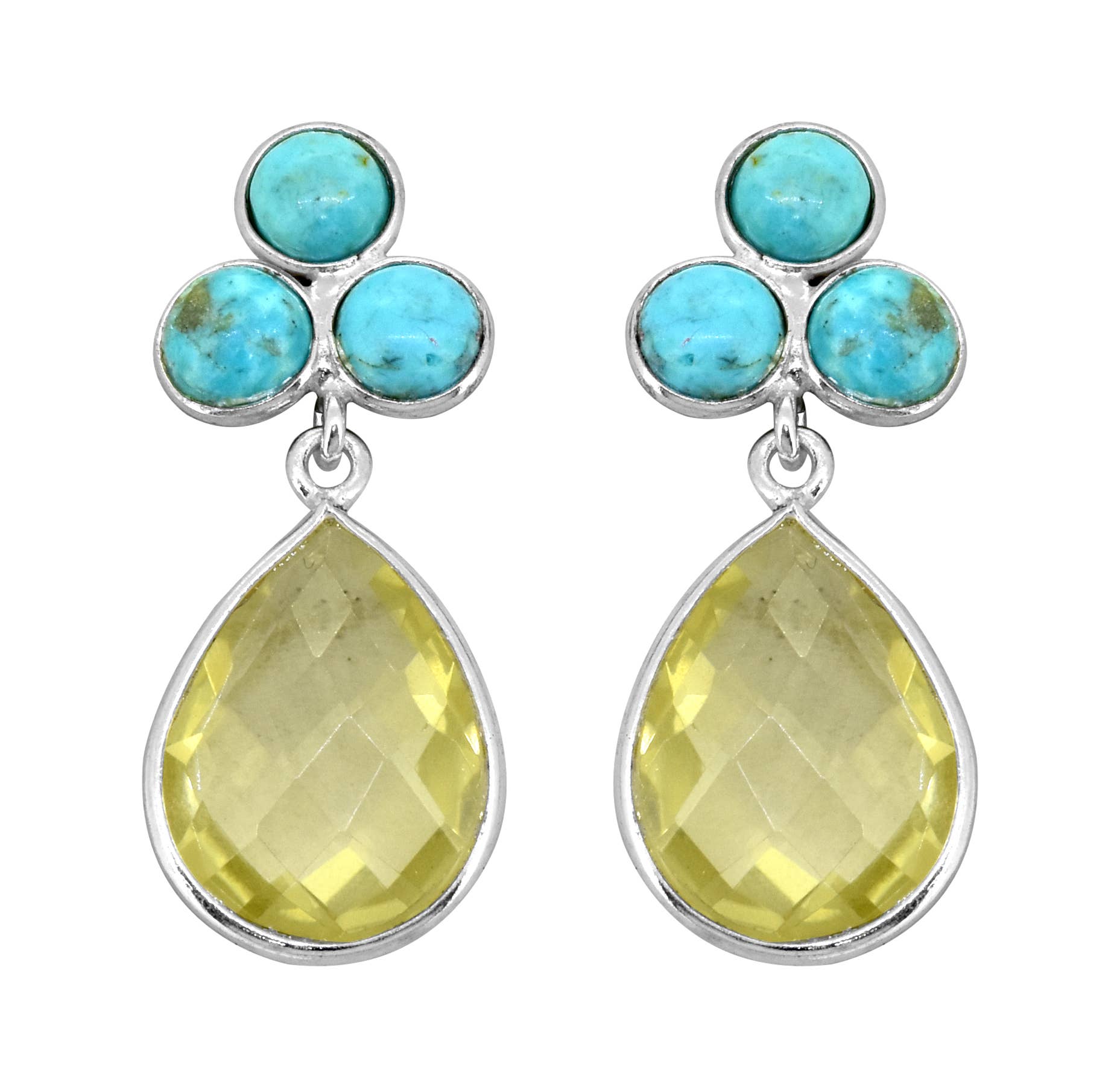 Tiramisu - Lemon Quartz Turquoise 925 Sterling Silver Dangle Earrings