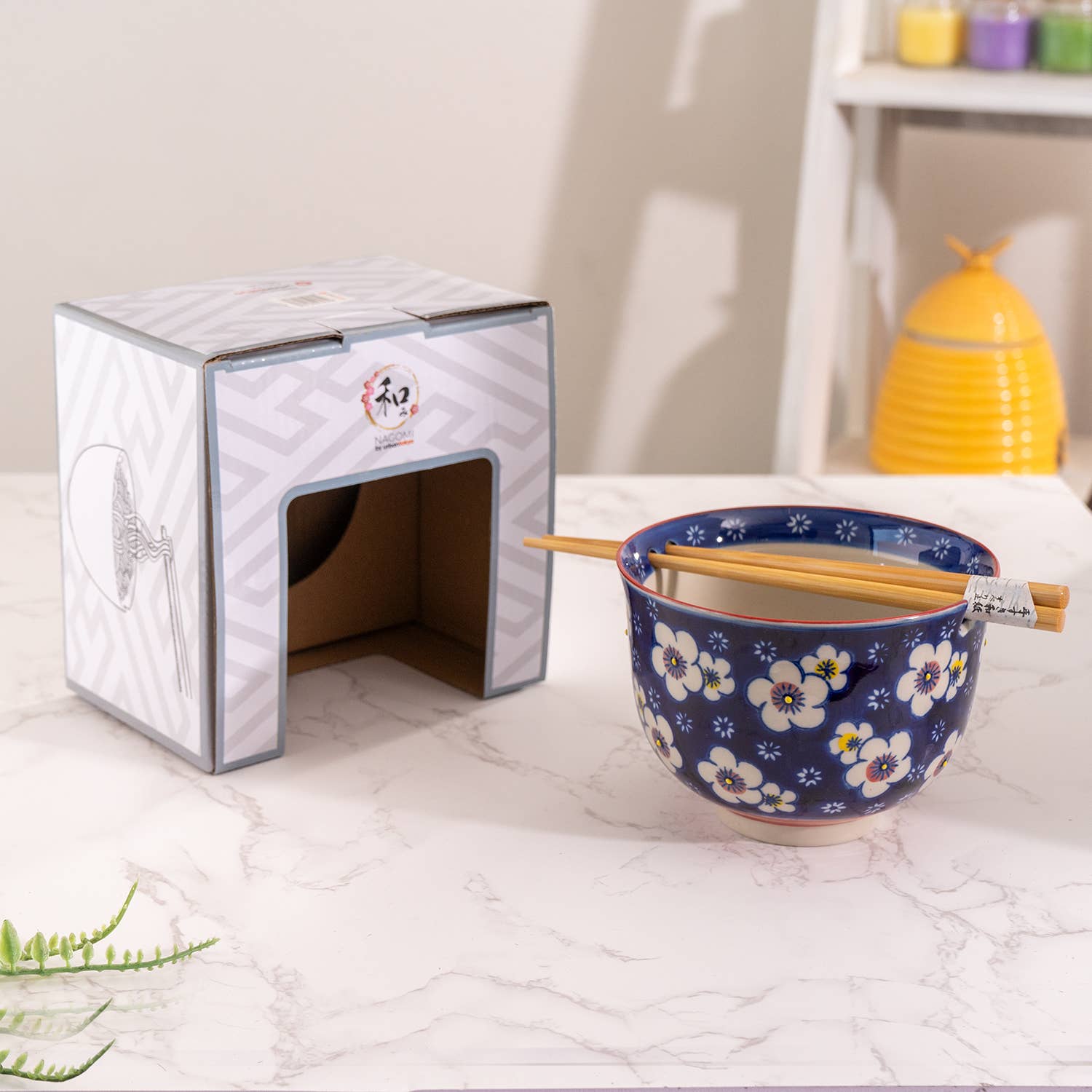 Urban Tokyo - Ume Plum Design 18oz 5.25"D Bowl With Chopsticks Set