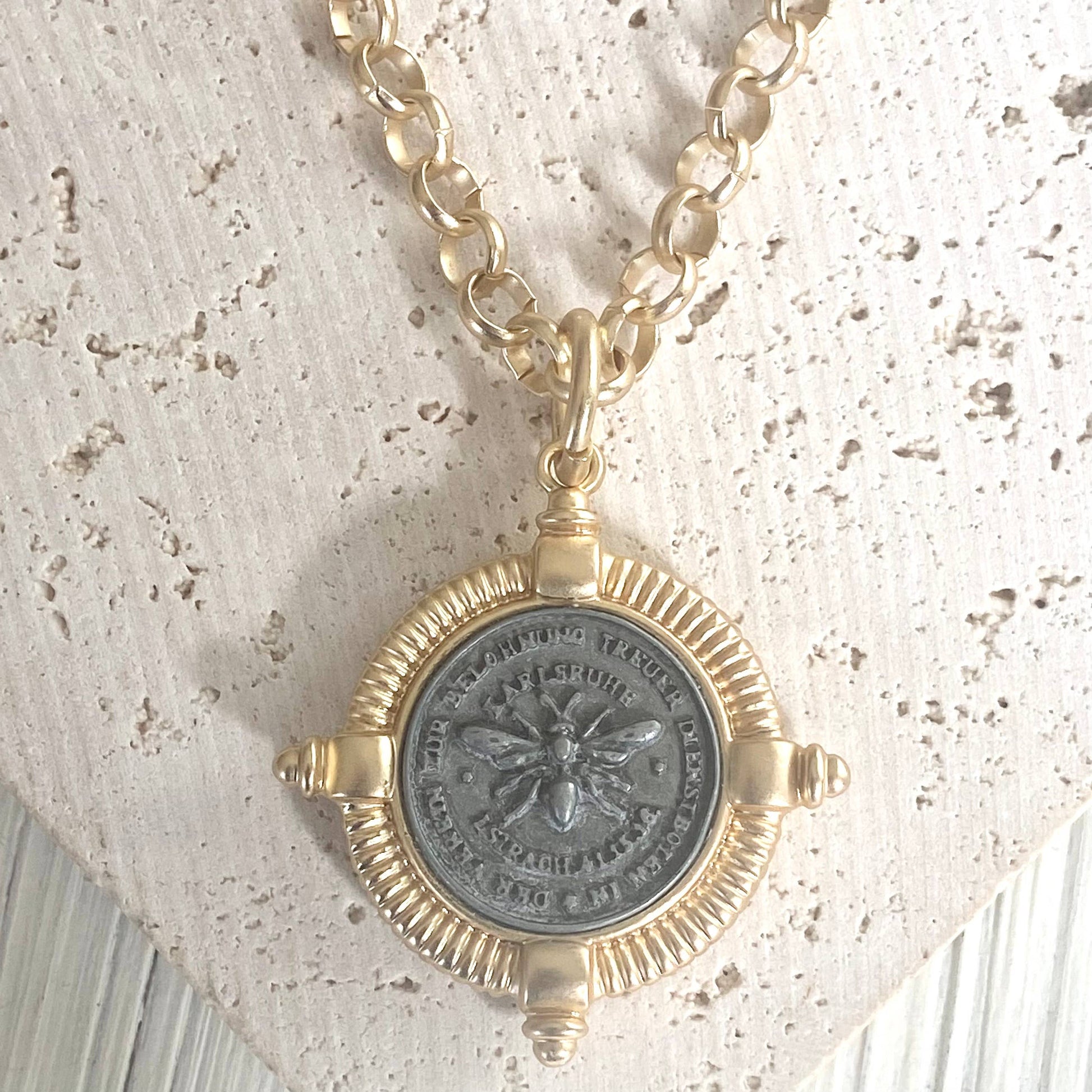 VB&CO Designs Handmade Jewelry - Bee necklace coin jewelry French matte gold boutique