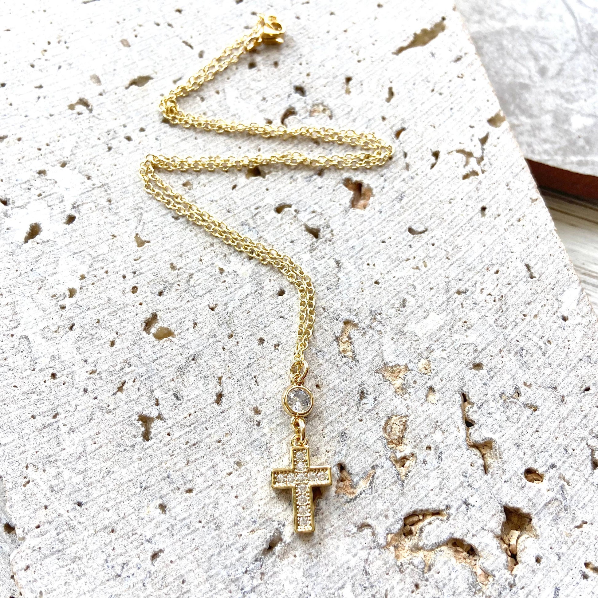 VB&CO Designs Handmade Jewelry - Gold cross crystal necklace Religious jewelry church: Gold