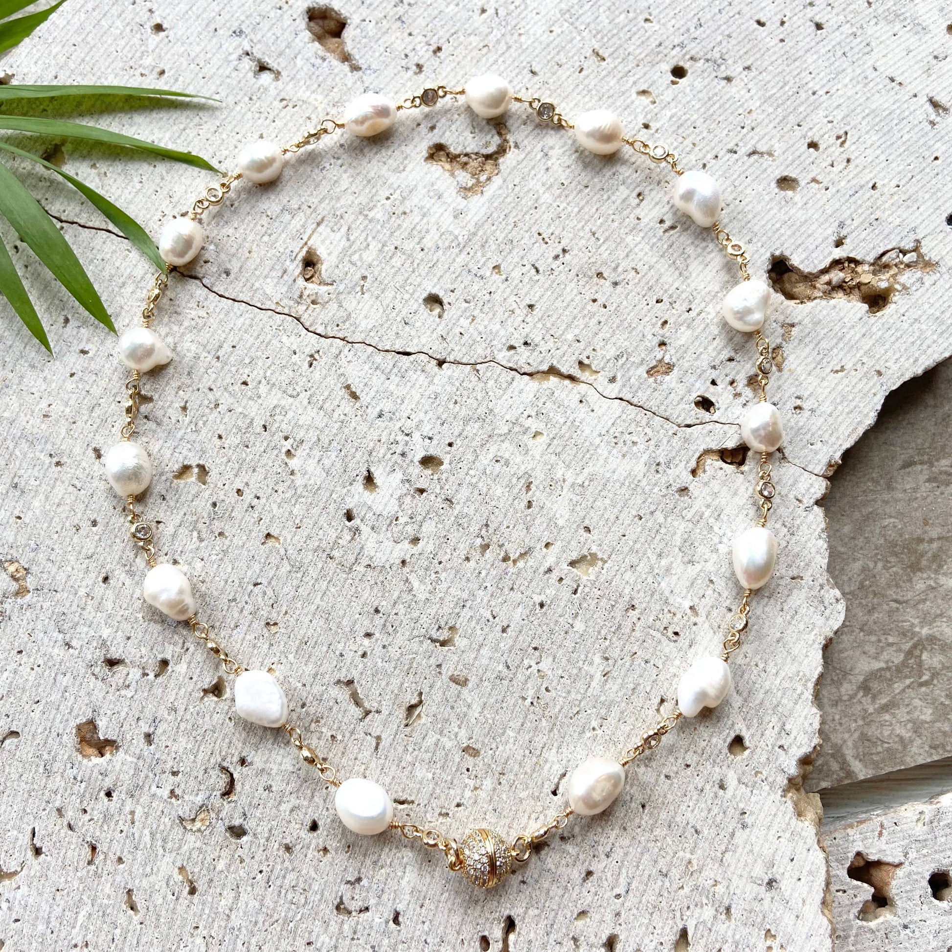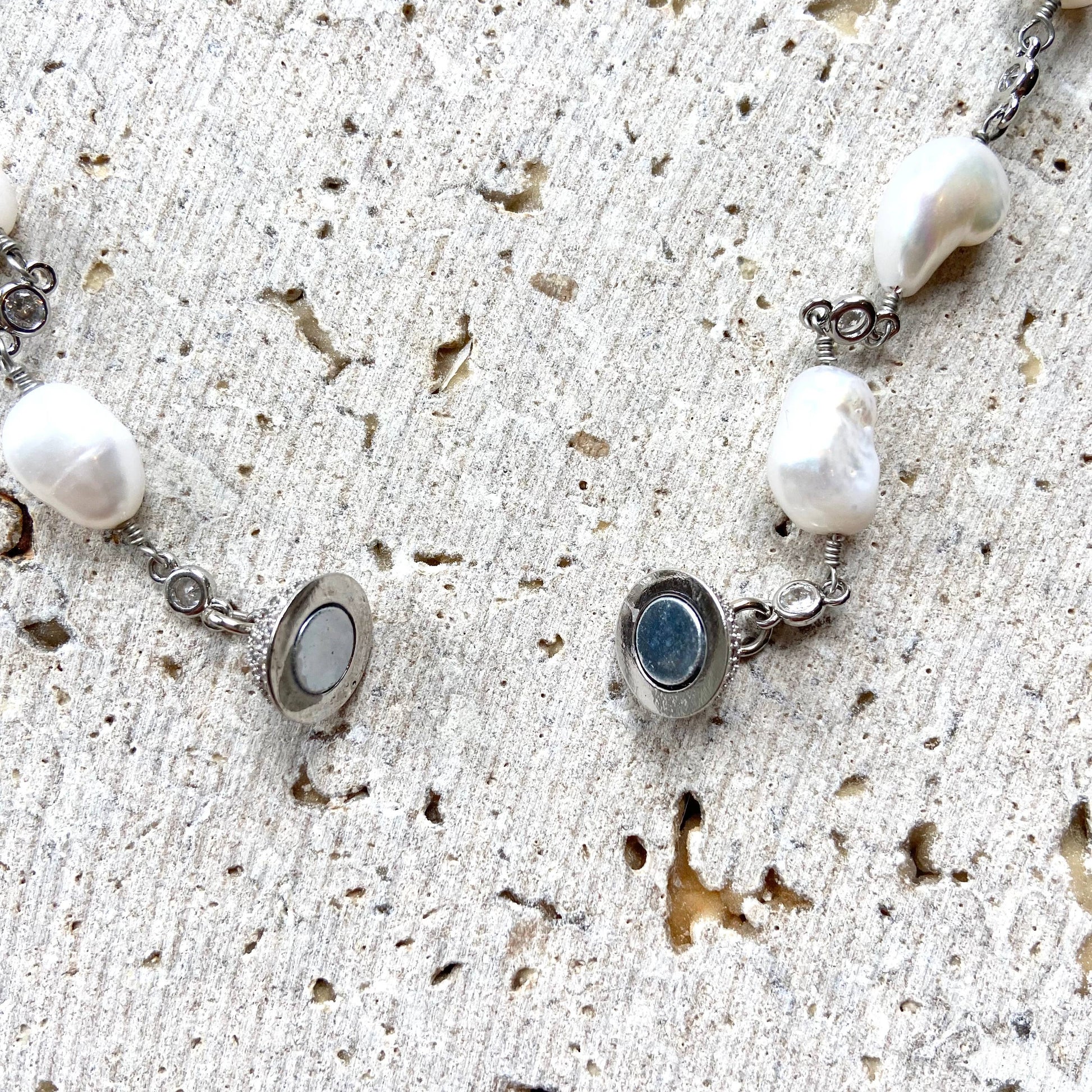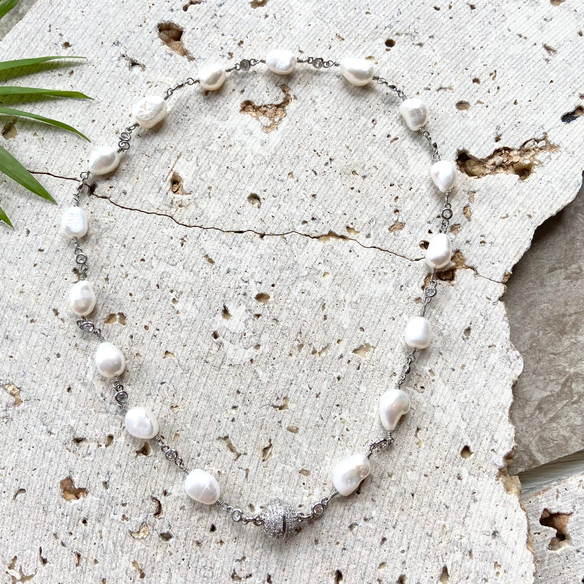 VB&CO Designs Handmade Jewelry - Magnetic genuine pearl necklace boutique salon bridal ocean: Silver / 18”