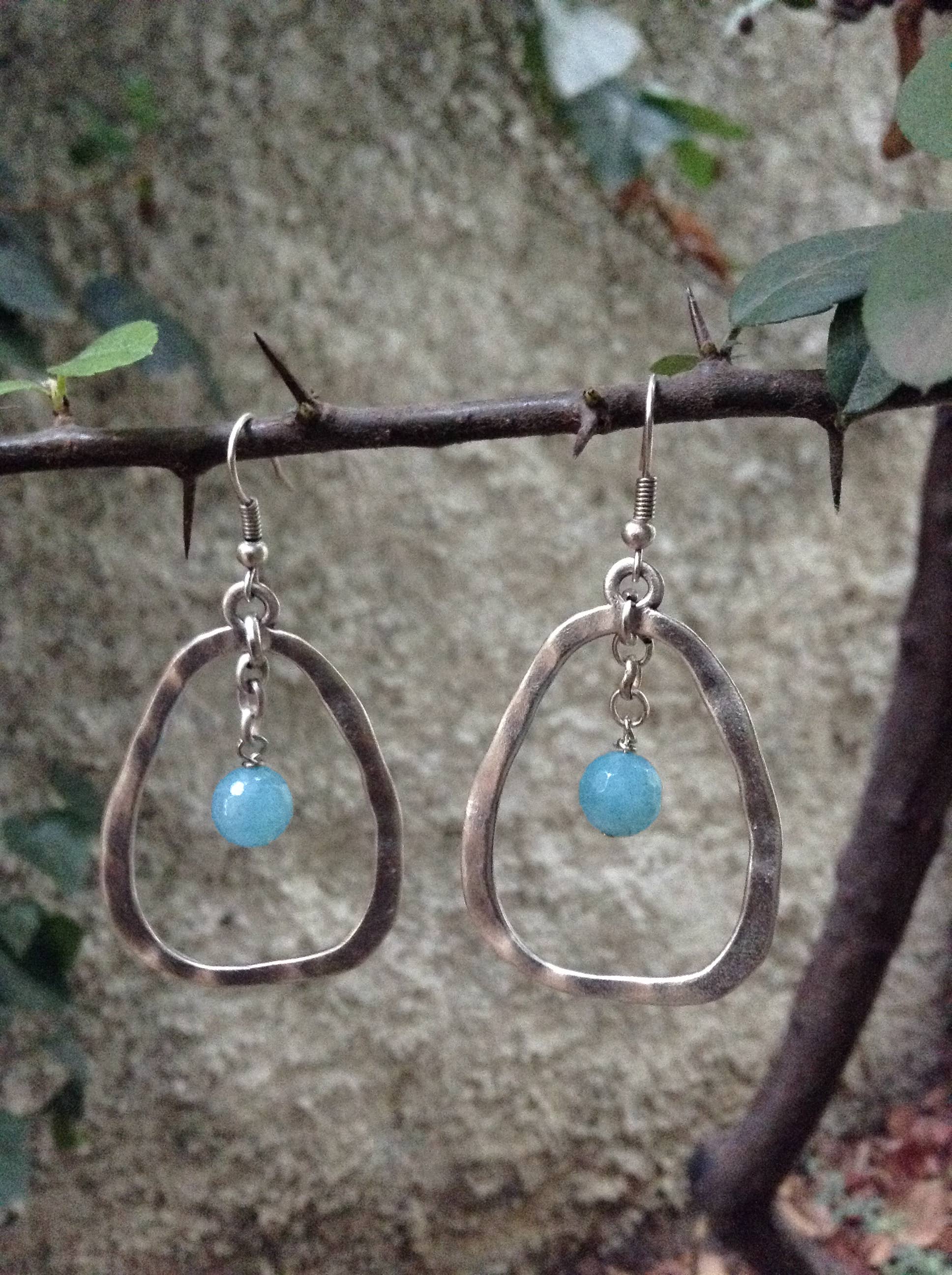 Oval hoop Earring brass, silver plated with stone. Ear wire: brass, silver plated