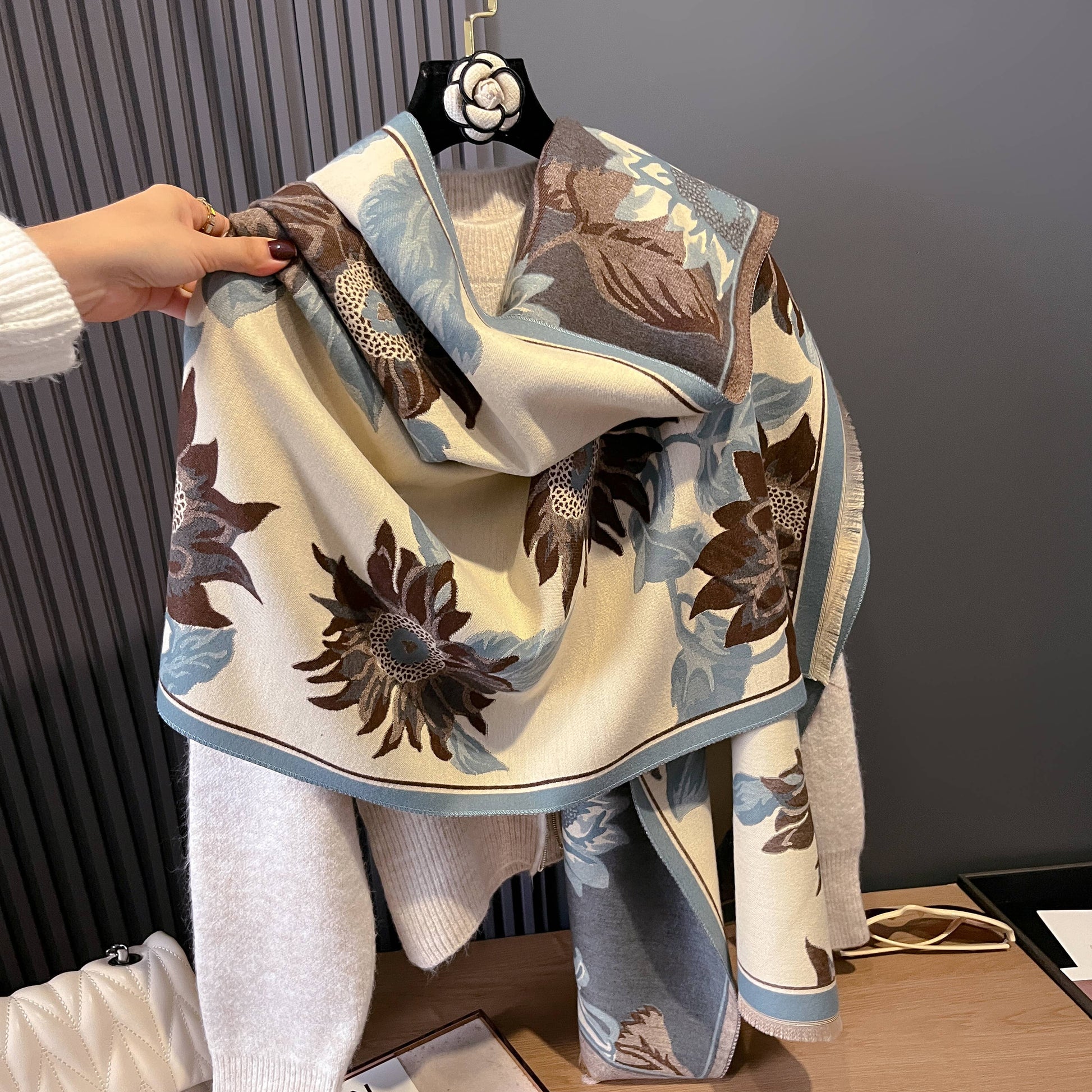 This one size fits all reversible wrap, drapes over and accents any outfit, casual or dressy. It feels and looks like cashmere. A beautiful layering piece! 55% Poly, 45% Viscose.