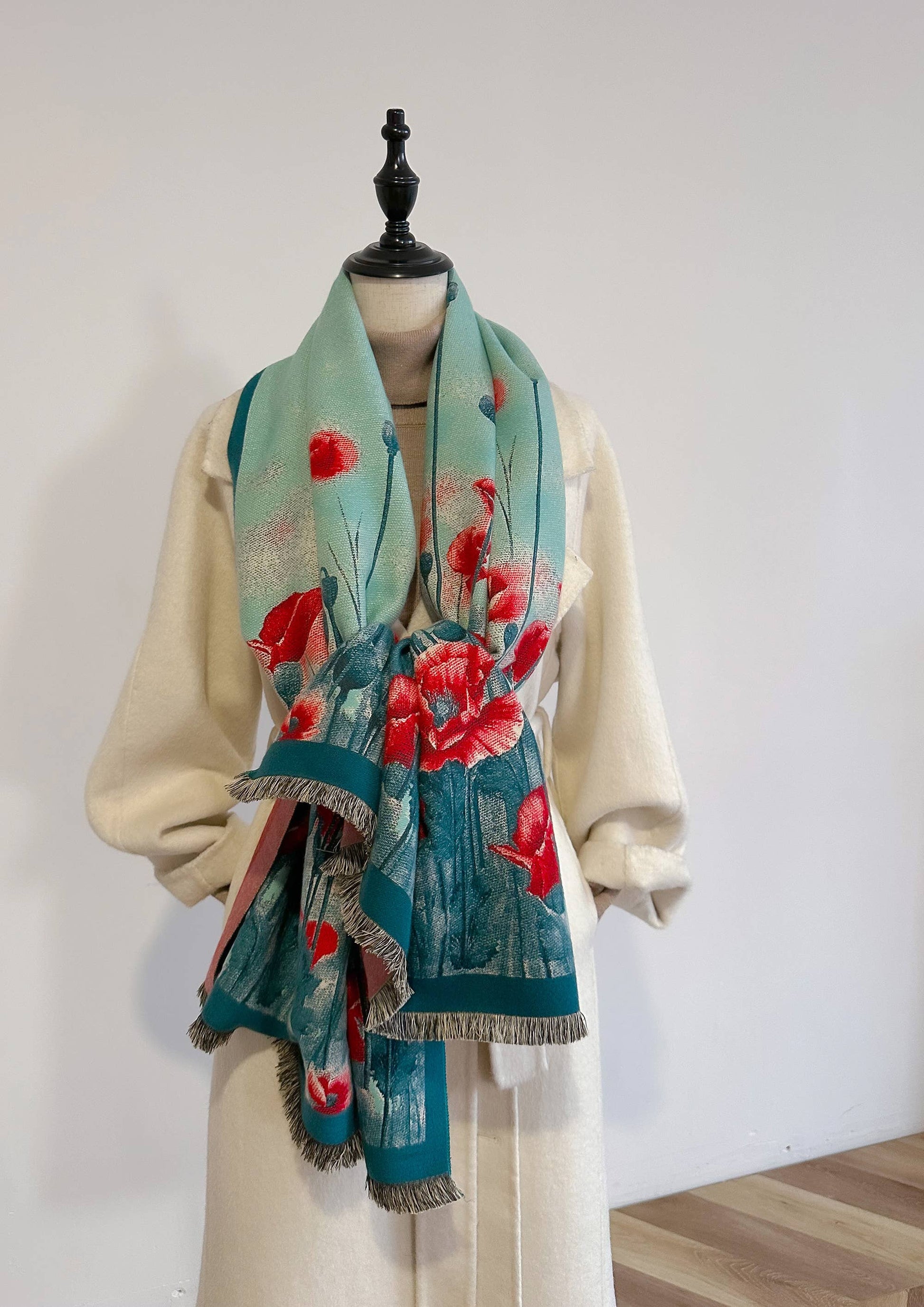 Winding River - Shawl Turq / Red Poppy Field Reversible Wrap – Artisan Shawl