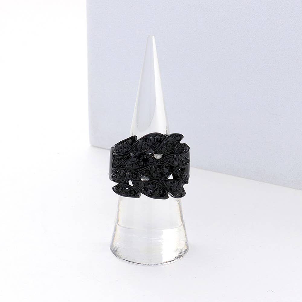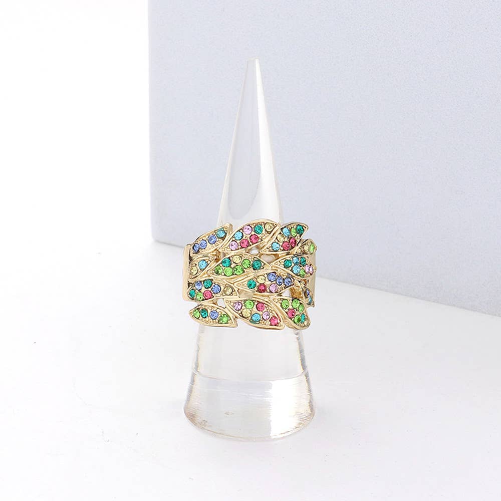 Wona Trading, Inc. - Stone Paved Leaves Stretch Ring: Gold